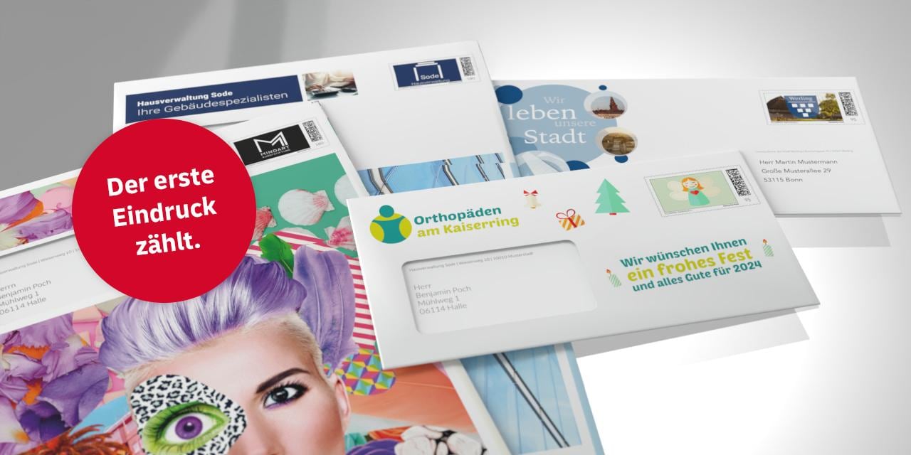- Raum für individuelle Gestaltung auf Umschlag und in der Briefmarke
