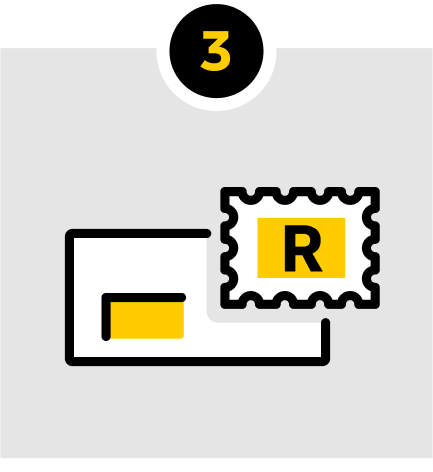 EINSCHREIBEN EINWURF-Label und Briefmarke aufkleben (beides erhalten Sie auch in der Filiale)