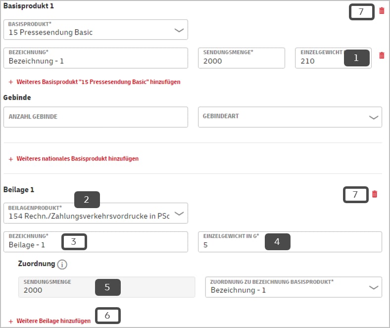 Vollbelegung: Trägerobjekt und Beilage(n)