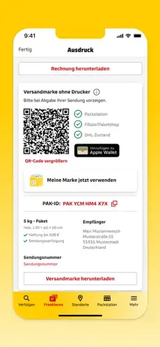 Die Verfügbarkeit der Bezahlvarianten in der Post & DHL App richtet sich jeweils danach für welches Produkt Sie eine Frankierung erwerben wollen.