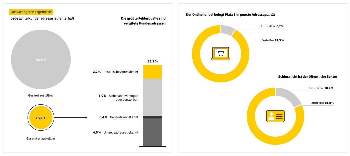 Fehlerquote: 13,1 Prozent der Kundenadressen sind unzustellbar, 86,9 Prozent sind zustellbar.