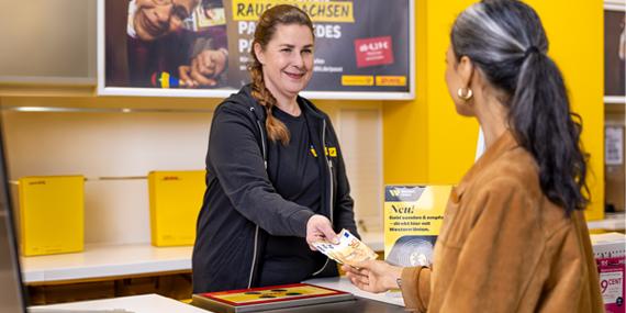 Senden Sie Bargeld zuverlässig ins Ausland – in vielen Deutsche Post Filialen verfügbar.
